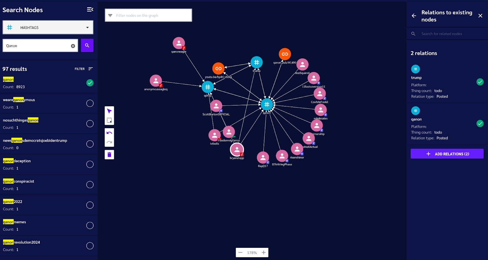 By natively supporting queries across multiple platforms along a range of connections, we hope to empower users to spot things like state-backed disinformation and astroturfing and to identify key players seeding malicious campaigns across a range of platforms.