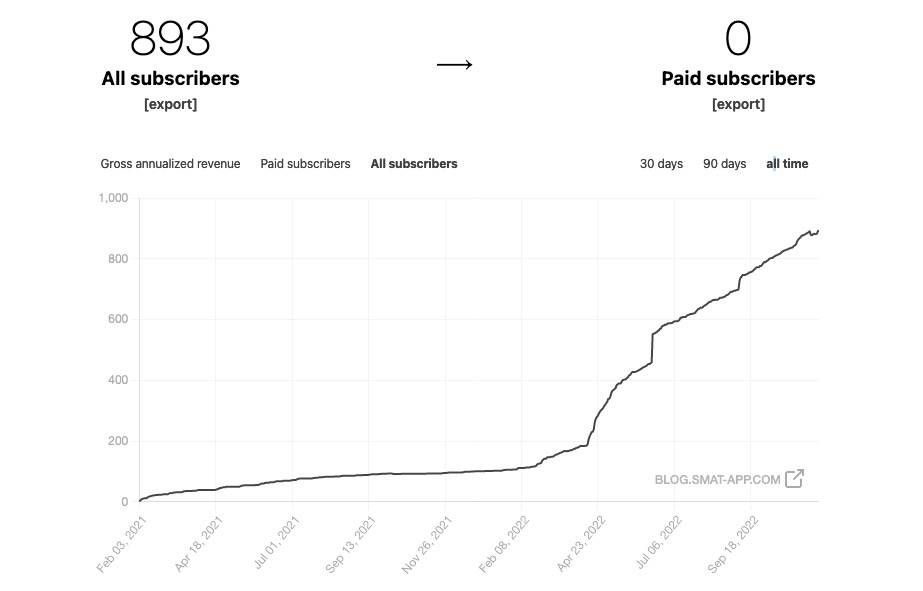 Currently, Open Measures engages its community across three main mediums: our blog on Substack, our trusted Slack server, and our public Twitter account. All three surfaces have seen user growth in 2022.