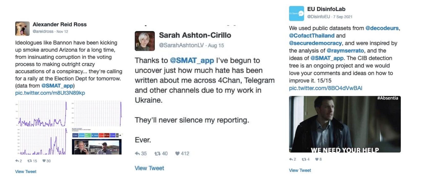 We regularly observe testimonials from researchers, activists, and other organizations highlighting the utility of our research and tools. These examples show users exploring Open Measures to unlock new insights and defend themselves against online hate campaigns.