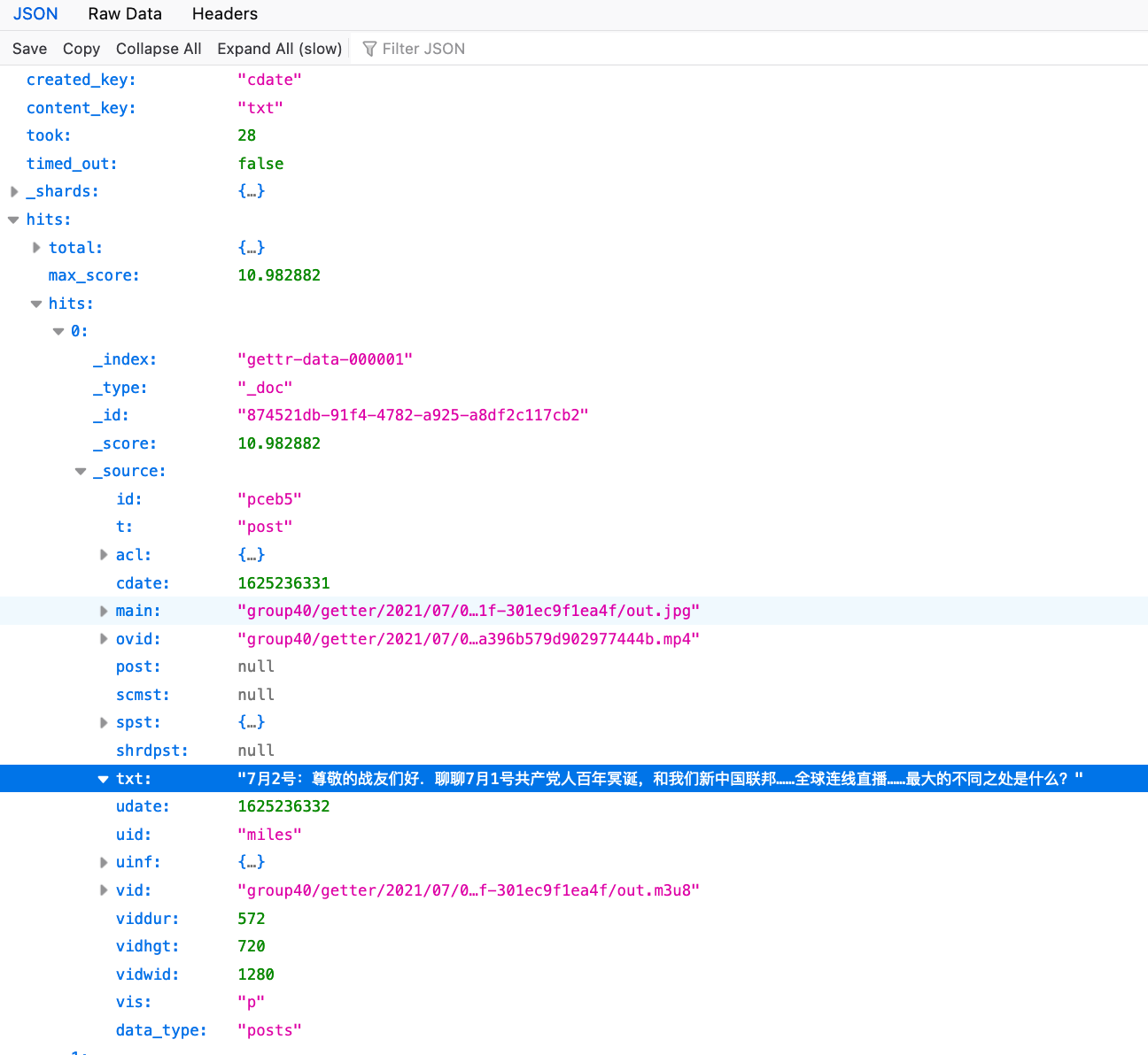 Once there, you will see the contents of the message as the field named “txt” as well as other information.