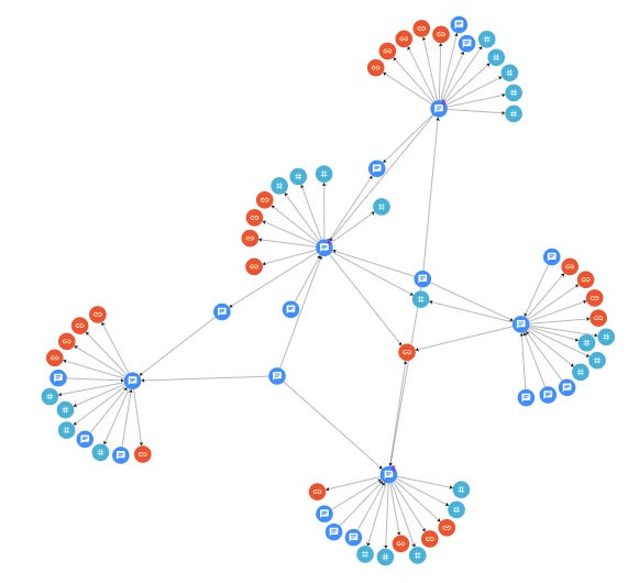 Lastly, by using network graph analysis, Open Measures researchers observed that the types of content produced by these channels varied. It spanned from QAnon content to posts directing users off-platform to sites associated with the vote audit campaign. Future work would require doing registrar analysis of the URLs/domains posted in these channels.