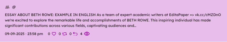 The posts we found advertising EditaPaper on VK were somewhat formulaic, often perplexing, and occasionally incoherent. Many also appeared to be AI-generated.