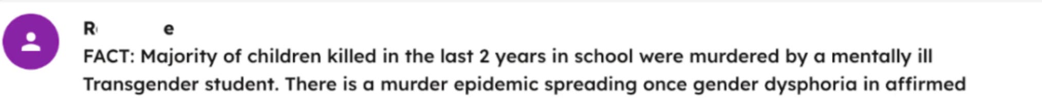 The content Scored users share is moderated by each individual channel, a policy which appears to entail less enforcement. Among other unmoderated extremist content, one poster on the c/OmegaCanada community was seen spreading anti-trans propaganda that included false statistics and implications that gender affirmation was associated with violent impulses.