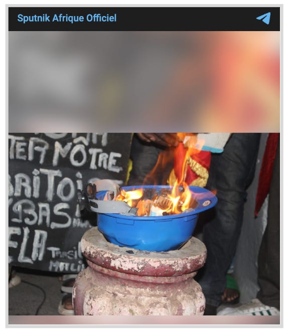 Most channels targeting the region post primarily in French and not in Russian, like Sputnik Afrique’s Telegram channel. On 16 November 2023, the channel posted an interview with the vice-president of Mali’s defence commission, Fousseynou Ouattara. In it, he stated that MINUSMA was not successful in fighting terrorism because that was not its goal, suggesting the mission had ulterior motives. According to the post, Ouattara said there was a surge in terrorist activities after MINUSMA arrived in Mali. Like most other posts on Sputnik Afrique’s Telegram channel, it was in French.